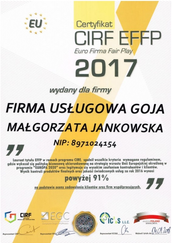 ✓ Certyfikat Ministra Finansów nr 21325/01.